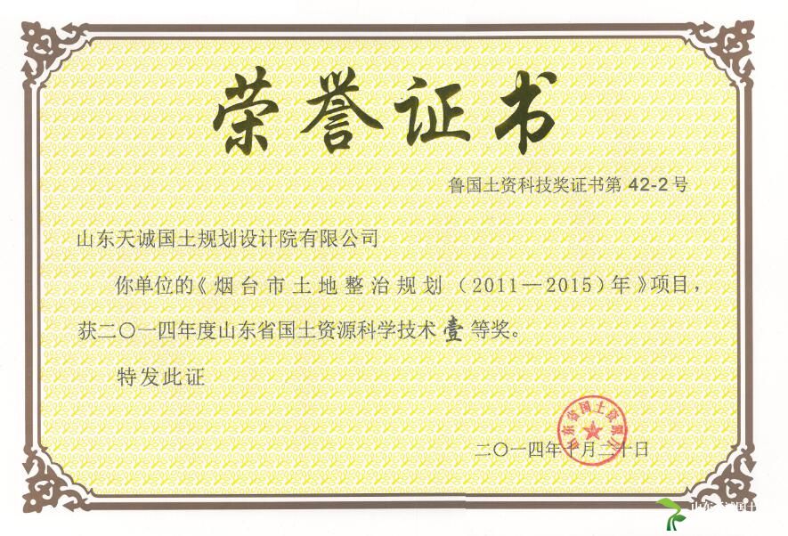 烟台土地规划科学技术一等奖